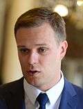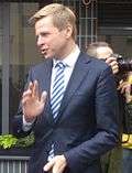 Homeland Union was the largest opposition party in the Eleventh Seimas. Andrius Kubilius, who had led the first government in modern Lithuanian history to survive a full term in office, did not seek another term as leader of the party. In 2015 he was replaced by Gabrielius Landsbergis, the grandson of the patriarch of the party, Vytautas Landsbergis.[43] The party surprised political observers by winning the largest share of the vote in the European Parliament elections in 2014 and tended to outperform the opinion polls due to the higher participation rate among their supporters.[44] The program of the party promised higher quality public services and reduced bureaucratic waste, new well-paid employment opportunities and improved public education.[45]