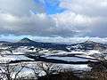 St Stephen Cathedral and residence of Roman Catholic Bishop of Litoměřice. Hill of Hazmburk rises from the flatland in the background.