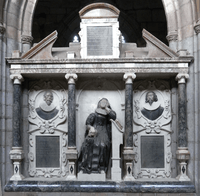 John II Tuckfield (1555–1630) of Tedburn St Mary, purchased Little Fulford from Robert Basset and thenceforth made it his seat.[9] He was the son and heir of John I (c. 1530 – c. 1586/89) and Joan Tuckfield of Crediton[10] John I was son and heir of William Tuckfield clothier of Crediton (d. c.1565) and his wife Joan daughter of John Kene of Upton Hellions.[11] William was probably a kinsman of John Tuckfield the wealthy woollen-cloth merchant and Mayor of Exeter in 1549–50,[9] the surviving portrait of whose wife Joan Tuckfield (1506–1573) is one of the oldest paintings in the collection of the Royal Albert Memorial Museum in Exeter. In 1797 the Devon topographer Rev. John Swete visited Little Fulford and recorded in his journal that the "large woollen manufactory" of the Tuckfield family "has ever since subsisted in these parts".[12] An elaborate monument survives in Crediton Church, next to Sir William Peryam's, erected by his son Thomas I Tuckfield (c.1585–1642), which shows a sculpted bust of John II Tuckfield on the left, of his son Thomas I on the right and a full figure of the latter's wife Elizabeth Reynell in the centre. John II Tuckfield married twice: having by his first wife Joan Morrish at least four children, and by his second wife Elizabeth Quicke at least seven children. Including: