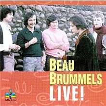 Live! is a live album by American rock group The Beau Brummels. The album, released in August 2000 by Dig Music, was recorded in February 1974 near Sacramento, California, shortly after it was announced that the band had reunited. The album includes a mix of performances of their most commercially singles, including "Laugh, Laugh" and "Just a Little," as well as then-new material, some of which would be recorded for the band's 1975 eponymous studio album.