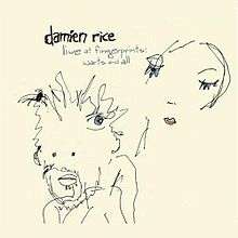 Live at Fingerprints Warts & All is the first live album from Damien Rice. It was recorded in November 2006 at an in-store performance at the Fingerprints Record store in Long Beach, California and was released on 23 October 2007, in the United States. It was recorded by Think Indie which is a consortium of independent record retailers, operating under the Coalition Of Independent Music Stores in the USA.