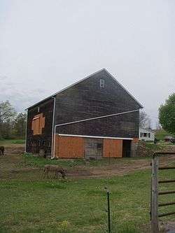 Donkeys graze outside this barn on Shadyside Avenue | |