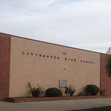 Livingston High School, in Livingston, California, United States, is a public secondary school in the Merced Union High School District. The school contains grades 9-12. Students come from Livingston Middle School and Ballico Middle School.