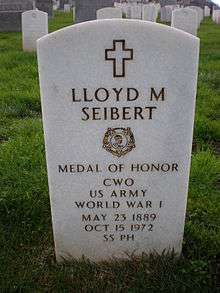 Lloyd Martin Seibert [1] (May 23, 1889–October 15, 1972) was a Medal of Honor recipient. He served in the United States Army during World War I. He rose to the rank of Chief Warrant Officer and is buried at San Francisco National Cemetery.