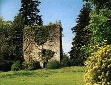 While Clan Colquhoun had occupied the site of the present club since ancient times, the medieval Rossdhu Castle was constructed by Sir John Colquhoun in 1457 along with the private chapel of St. Mary of Rossdhu when his lands were consolidated into the free Barony of Luss.[1] Rossdhu is derived from the Scottish Gaelic ros dubh, meaning the Black Headland.[1] Rossdhu Castle was ruined in a fire after the construction of Rossdhu Mansion (ruins can be seen directly behind the course's 18th green).[1]