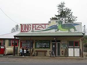 The Long Flat village has a class four primary school, hotel, community hall, recreation ground, tennis court and general store. Long Flat Public School has 36 students enrolled for classes Kindergarten to Year 6 in 2013. The 2011 census did not record Long Flat's population, however it shows that the population of the district including the localities of Kindee, Toms Creek, Ellenborough and Birdwood was 294. The Electoral district of Oxley records show that 296 people voted there in 2007.[1] Long Flat voting in the Division of Lyne recorded 286 voters placed their votes in the village in 2007.[2]