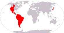 Triops longicaudatus is widespread in North America. In Canada, it is found only in the provinces of Alberta, Saskatchewan and Manitoba.[7] It is widespread throughout the contiguous United States, Mexico, and Hawaii, but not Alaska. Tadpole shrimps may be found in parts of South America, in (Argentina and Galápagos Islands),[8] the West Indies, and the Pacific Islands, including Japan and New Caledonia.[9] The related European species Triops cancriformis is an endangered species in the United Kingdom, and is legally protected under Schedule 5 of the Wildlife and Countryside Act 1981 (as amended).[10]