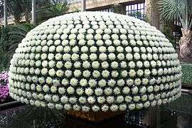 Longwood's second and largest conservatory, opened in 1921, is one of the world's great greenhouse structures. The conservatory alone is home to 4,600 types of plants and trees. Since its original construction began in 1919, it has undergone expansions and renovations.[30] On Palm Sunday in 1966, the Palm House opened. This space was designed by Victorine and Samuel Homsey, Inc.[31] In 1989, the new Silver Garden opened. This garden was designed by Isabelle Greene, and is meant to evoke the feeling of a dry desert stream bed.[32]
