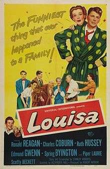 Louisa is a 1950 American comedy film directed by Alexander Hall starring Ronald Reagan, Charles Coburn, Ruth Hussey, Edmund Gwenn and Spring Byington. It was nominated for the Academy Award for Best Sound (Leslie I. Carey).[1]