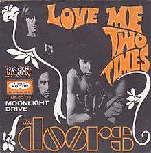 "Love Me Two Times" is a song by The Doors. It first appeared on their second studio album Strange Days. It was edited to a 2:37 length and released as the second single (after "People Are Strange") from that album, and reached number 25 on the charts in the US.[1]