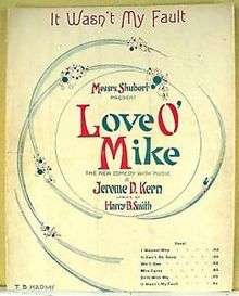 Love O’ Mike is a musical comedy in two acts and a prologue with book by Thomas Sydney, lyrics by Harry B. Smith, and music by Jerome Kern. The show was produced by Elisabeth Marbury and Lee Shubert at the Shubert Theatre, and opened January 15, 1917. [1]