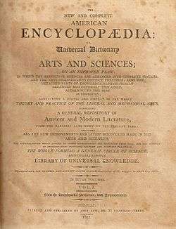 Low's Encyclopædia is an early American encyclopedia, titled The New and Complete American Encyclopædia or Universal Dictionary of Arts and Sciences. It was published in New York City between 1805 and 1811. Consisting of seven volumes quarto, it is noteworthy among America's earliest encyclopedias for having been written in the United States, as opposed to being an American reprint of a British work, as were, for examples, Dobson's Encyclopedia (1789 to 1798), the Bradford printing (1806 to 1820) of Rees's Cyclopædia (1802 to 1820), Samuel A. Mitchell's American printing (1816) of the British Encyclopaedia (1809), or the Birch and Small printing (A. F. M. Willich and James Mease, Philadelphia, 1803) of the Domestic Encyclopedia (A. F. M. Willich, London, 1802).
