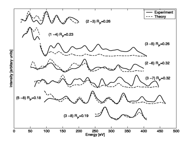 where and is the imaginary part of the electron self-energy. In general, is considered as a good agreement, is considered mediocre and is considered a bad agreement. Figure 7 shows examples of the comparison between experimental I-V spectra and theoretical calculations.