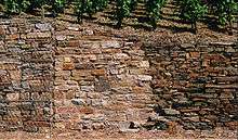 23. Ideal example of a dry stone wall. Built with stone broken on the spot. Hatzenporter Burg Bischofsteiner