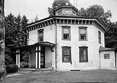 The Lukens Pierce House, also known as the Fallowfield Octagonal House. is an historic octagon house located northwest of Ercildoun on Wilmington Road in East Fallowfield Township, Chester County, Pennsylvania. The building was constructed of stuccoed fieldstone and has a cupola. There are four large rectangular rooms and four smaller triangular rooms on each floor.[2]