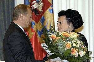 ![]() Lyudmila Zykina (left) with Svetlana Medvedeva on 10 June 2009. | |