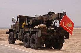The M936 was a wrecker used to recover disabled or stuck trucks and lift large components. A rotating, telescoping, and elevating hydraulic boom could lift a maximum of 20,000 lb (9,100 kg). Although the truck was not meant to carry a load, the boom could support 7,000 lb (3,200 kg) when towing. They had 20,000 lb (9,100 kg) front and 45,000 lb (20,000 kg) rear winches, outriggers, boom braces, chocks, block and tackle, oxygen-acetylene torches, and other automotive tools.[1][3]