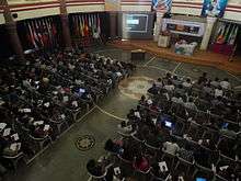 MITCOE regularly takes part in an international robotics event called ROBOCON hosted by MIT in association with Asia Pacific Broadcasting Union (ABU). The event gets televised on Doordarshan (Prasarbharati) and colleges from 16 different nations send robotics teams to take part in this competition.[23] In 2010 a special dedicated lab for Robocon have been added to the MITCOE. In 2012 MIT college of engineering Robocon team was ranked 6th & in 2013, 14th among 80 engineering colleges including IIT's and NIT's nationwide.[24]