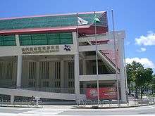 The Macau Olympic Aquatic Centre (Chinese: 澳門奧林匹克游泳館; Portuguese: Piscina Olimpica De Macau) is an aquatic center in Taipa, Macau, China. Inaugurated on March 28, 2003, the aquatic center covers a total area of 3,220 m2 and has a seating capacity of 1,500.[1] The Aquatic Centre includes a diving pool 25 meters by 25 meters (with an adjustable floor capable of reaching a maximum depth of 5 meters) and a 50m swimming pool with 10 lanes. Both facilities comply with the latest FINA standards and are eligible for holding international competitions. Water quality is maintained by a sophisticated sanitizing system using ozone, instead of chlorine.