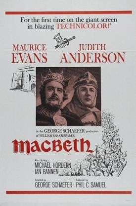 Macbeth is a 1960 television film adaptation of the William Shakespeare play presented as the November 20, 1960 episode of the American anthology series Hallmark Hall of Fame. The series' second production of the play was, like the 1954 live telecast, also directed by George Schaefer, and again starred Maurice Evans and the Australian-born Judith Anderson. The supporting cast, however, was different, consisting entirely of British actors, and was filmed on location in Scotland; the 1954 version had used a mostly American cast.