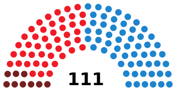 The number of seats in the regional Assembly was determined by the population count, with 1 seat per each 50,000 inhabitants or fraction greater than 25,000, according to the most updated census data.[1] The updated population census for the October 2003 election was the corresponding to year 2002 (5,527,152), the same than the one for the May 2003 election; thus, the Assembly size was maintained to 111 seats.[2]
