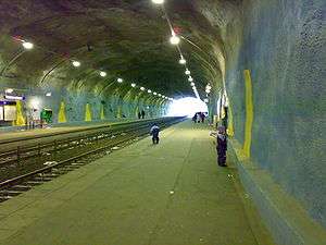 The station has two platforms, one for southbound and one for northbound trains, and is quite unique in that the majority of the station is situated inside a tunnel with trains stopping 220 metres (720 ft) inside it.