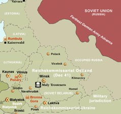 The Trostinets extermination camp,[1] also known as Maly Trostinets,[2] Maly Trastsianiets and Trascianec (see alternative spellings), was a World War II Nazi German death camp located near the village of Maly Trostinets (Малы Трасцянец, "Little Trostinets") on the outskirts of Minsk in Reichskommissariat Ostland. It operated between July 1942 and October 1943, by which time, virtually all Jews remaining in Minsk had been murdered and buried there.[1][2]