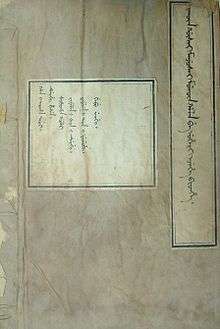 When the Qing Empire conquered Dzungaria in 1759, they proclaimed that the new land was absorbed into "China" (Dulimbai Gurun) in a Manchu language memorial.[109][110][111] The Qing government expounded in their ideology that they were bringing together the "outer" non-Han Chinese like the Inner Mongols, Eastern Mongols, Oirat Mongols, and Tibetans together with the "inner" Han Chinese, into "one family" united in the Qing state, showing that the diverse subjects of the Qing Empire were all part of one family. The Qing government used the phrase "Zhongwai yijia" 中外一家 or "neiwai yijia" 內外一家 ("interior and exterior as one family"), to convey this idea of "unification" of the different peoples of their empire.[112] A Manchu language version of a treaty with the Russian Empire concerning criminal jurisdiction over bandits called people from the Qing Empire as "people of the Central Kingdom (Dulimbai Gurun)".[113][114][115][116] In the Manchu official Tulisen's Manchu language account of his meeting with the Torghut leader Ayuka Khan, it was mentioned that while the Torghuts were unlike the Russians, the "people of the Central Kingdom" (dulimba-i gurun 中國, Zhongguo) were like the Torghuts, and the "people of the Central Kingdom" referred to the Manchus.[117]