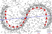 - ↑ The illustration is prepared using free software: E.M. Mirkes, Principal Component Analysis and Self-Organizing Maps: applet. University of Leicester, 2011