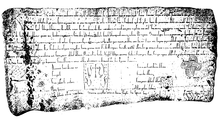 In February 1152 Manrique encouraged the settlement of Balaguera and Cedillo in the Extremadura by dividing his property there amongst some settlers.[15] Sometime before December 1153, Manrique married Ermessinde, daughter of Aimeric II of Narbonne and a cousin of Raymond Berengar IV of Barcelona. She bore him children: Aimerico, Ermengarda, Guillermo (William), María, Pedro and Sancha.[16] On 5 December 1153, in their first recorded action as husband and wife, Manrique and Ermessinde gave the village of Cobeta to the Benedictine monasteries of Arlanza, San Salvador de Oña and Santo Domingo de Silos,[17] and the cathedral of Santa María in Sigüenza, at the time under construction according to a Benedictine plan. The charter of this donation was drawn up by Sebastian. It survives with tags which once attached a seal, now lost.[18] Manrique may have been the first member of the Castilian nobility to employ a seal to authenticate documents. The royal chancery had only been employing them from 1146, though episcopal chanceries had already adopted them under French influence (1140).[19] Manrique's marital connexion with the rulers of Narbonne may have influenced his decision, and his seal was probably based on the type used in Languedoc at the time. In 1163, when the chancery of the young Alfonso VIII adopted a seal, it was probably based on Manrique's. The earliest surviving aristocratic seal from Castile is one of Manrique's son Pedro, from document of 1179 drawn up at Calatayud.[20][21] A look at the earliest seals of Alfonso VIII and Pedro Manrique suggests that Manrique's own seal showed an armed, stylised, equestrian figure patterned after Anglo-French designs, but left-facing in the Mediterranean fashion.[22]