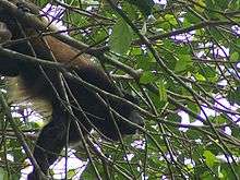 The mantled howler has little interaction with other sympatric monkey species but interactions with the white-headed capuchin sometimes occur. These are most often aggressive, and the smaller capuchins are more often the aggressors.[16] However, affiliative associations between the capuchins and howlers do sometimes occur, mostly involving juveniles playing together, and at times the capuchins and howlers may feed in the same tree, apparently ignoring each other.[16]
