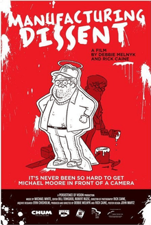 Manufacturing Dissent: Uncovering Michael Moore is a 2007 documentary film. It asserts that filmmaker Michael Moore has used misleading tactics, primarily using on-camera statements by interviewees with personal grievances against Moore as proof. The documentary attempts to expose what the creators say are Moore's misleading tactics and mimics Moore's style of small documentary makers seeking and badgering their target for an interview to receive answers to their charges. The film was made over the course of two years by Canadians Debbie Melnyk and Rick Caine after they viewed Fahrenheit 9/11, Moore's controversial film that attacked the Bush administration and its policies.[1] Melnyk and Caine have stated that when they first sought to make a film about Moore, they held great admiration for what he had done for the documentary genre and set out to make a biography of him. During the course of their research, they became disenchanted with Moore's tactics.[2] The title is a parody of the book Manufacturing Consent by Edward S. Herman and Noam Chomsky, and the film it inspired. In June 2007, Liberation Entertainment Inc. signed an exclusive deal with the filmmakers for all video and theatrical rights in the US & UK.