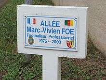 Marc-Vivien Foé (1 May 1975 – 26 June 2003) was a Cameroonian international footballer, who played as a midfielder for both club and country. With success in France's Division 1, and stints in England in the Premier League, before his sudden death during an international competitive match, shocked the football community worldwide.[1] He was posthumously decorated with the Commander of the National Order of Valour.