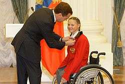 She won two medals in sitting biathlon, one of them gold[2] and was on the gold medal team of women's cross-country relay.[3] She is deaf and paralyzed. She lives in a home with twelve other disabled women, but she dreams of getting an apartment of her own due to her medal wins.[4]