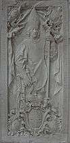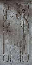 The ornamental portal was made from red sandstone, when Julius Echter was bishop, as indicated by his coat of arms. It displays figures of the apostles Saint Peter and Saint Paul, and above them the annunciation and finally the bishops Kilian und Burchard of Würzburg and a madonna.