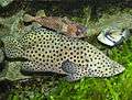 | Blue dot grouper | ![]() | Cephalopholis argus | No | Moderate | Deep black to tan fish with blue spots throughout. | 50 cm (19.7 in) |