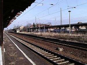 Markkleeberg-Gaschwitz is a railway station in Markkleeberg, Germany. The station is located on the Leipzig–Hof railway and the Leipzig-Plagwitz–Markkleeberg-Gaschwitz railway. The train services are operated by Deutsche Bahn. Since December 2013 the station is served by the S-Bahn Mitteldeutschland.