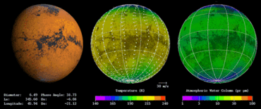 This Mars climate model is a complex 3-dimensional (height, latitude, longitude) model, which represents the processes of atmospheric heating by gases and ground-air heat transfer, as well as large-scale atmospheric motions.[1]