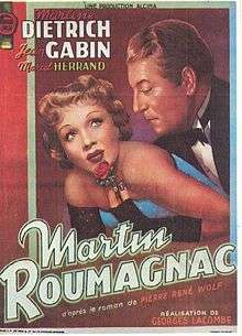 Martin Roumagnac (also known as The Room Upstairs) is a 1946 French crime film made by Alcina and distributed by Lopert Film. It was directed by Georges Lacombe.