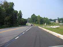 When the MD 4 freeway was completed through Melwood in 1964, MD 223 was extended north along Melwood Road, which was reconstructed as a divided highway, to its present terminus.[12][13] The highway was expanded to a divided highway on either side of MD 5 in 1989.[14] MD 223's single-point urban interchange with MD 5 was constructed in 1992.[15][16] Piscataway Road was extended south from Floral Park Road to Livingston Road as a county highway in 2007.[17] In 2011, a barrier was constructed at the western end of MD 223 at Livingston Road, making Floral Park Road a dead end; through traffic now uses the county-maintained portion of Piscataway Road to reach Livingston Road.[18][19] MD 223 was relocated at its intersection with Rosaryville Road in 2012; this work included a new bridge across the upper reaches of Pisacataway Creek.[20]