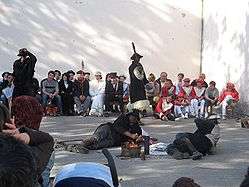 The maskarada [mas̺ˈkaɾada] is a popular set of traditional, theatrical performances that take place annually during the time of carnival in the Basque region of Soule, France (Zuberoa in the Basque language). It is generally referred to in the plural (maskaradak) as it is repeated across the region on the streets of villages (one day per village) over the span of a month or two in late winter through spring. The plays are performed by the villages' (usually younger) inhabitants, and the arrangements for each maskarada are the responsibility of each participating village. Sometimes, when two villages are very small, they will share the duties together.