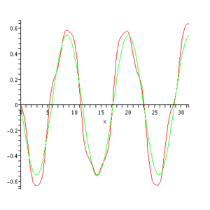 Note that, for example, (green) resembles a cosine function, but with flatter hills and shallower valleys.