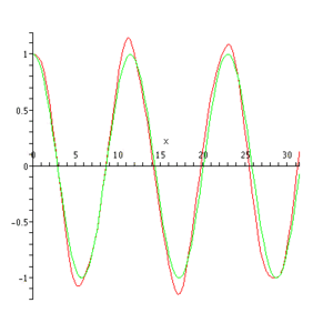 The series expansions of periodic Mathieu functions in ascending powers of are most easily obtained by perturbation theory.[5] For large values of two adjacent periodic solutions merge together to an asymptotic solution for large values of as shown in the book of Müller-Kirsten.