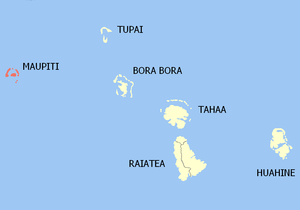 Location of the commune (in red) within the Leeward Islands. The atolls of Maupihaa (Mopelia), Manuae (Scilly), and Motu One (Bellinghausen) lie outside of the map. | |