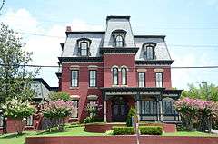 The McDonald-Wait-Newton House is a historic house at 1406 Cantrell Road in Little Rock, Arkansas. It is a 2-1/2 story brick building, with a mansard roof providing a full third story. The main facade is five bays wide, with a projecting central section topped by a mansarded tower. The roof is pierced by dormers with segmented-arch tops, and windows framed by decorative hoods. The main entrance is set in the base of the tower, with an elliptical stained glass light above. A porch shelters the entrance and wraps around to the right side, with a modillioned cornice and bracketed posts. Built in 1869, it is the last surviving post-Civil War mansion built along what became known as "Carpetbaggers' Row", as it is where a number of Northerners settled when moving to the city.[2]