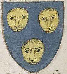 - Ceulx de Maligny - Azure, three lions' faces or. ~ Armorial de Berry, 1440s