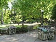 By the 1920s the park "had become central to Greenville life," and it was the site of numerous Sunday school and cotton mill picnics, concerts, dances, and family reunions.[4] From 1935 to 1941 it was renovated by the Works Progress Administration; and in 1941, Sears, Roebuck and Company donated $7,500 toward the building of a stone shelter.[5] That same year, Greenville City Council named the park for city engineer John A. McPherson in recognition of his service in developing the city's parks.[6]
