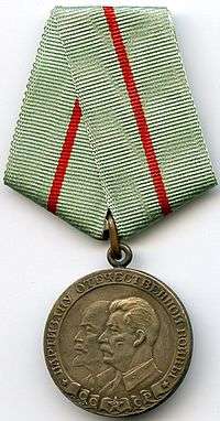The Medal "Partisan of the Patriotic War" (Russian: Медаль «Партизану Отечественной войны») was a World War II Soviet paramilitary award established in two classes on February 2, 1943, by decree of the Presidium of the Supreme Soviet of the USSR.[1] to recognise the fortitude and courage of the partisans on the home front in their struggle to free the Soviet Motherland of the Nazi invaders far behind enemy lines. Its statute was amended by a further decree of the Presidium of the Supreme Soviet of the USSR on February 26, 1947.[2]