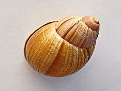 | Shell of Megalobulimus ovatus on display at the Museo Civico di Storia Naturale di Milano | |
