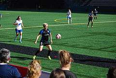 In 2013, Rapinoe joined Seattle Reign FC to which she had been previously allocated in the National Women's Soccer League.[63] Before Rapinoe joined the squad, the team had been struggling to score goals and were 0–9–1 in ten games.[64] With the addition of Rapinoe, her national team and former Seattle Sounders Women teammate, Hope Solo, and some lineup changes to the front line, the Reign improved their goal-scoring ability and turned their league record around.[65] During a match against her former team in the WPS, the Chicago Red Stars, Rapinoe played a direct role in all of Seattle's four goals – leading the team to a 4–1 win over Chicago. After scoring two goals and serving one assist during the match, she was named NWSL Player of the Week for Week 16 for the 2013 NWSL season.[66] Despite only playing approximately half of the season (12 out of 22 regular season games), Rapinoe was the Reign's leading scorer with five goals.[67]